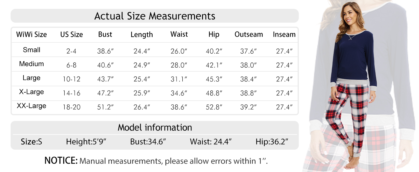 - 【WARM TIPS】: These pajamas for women are sized from S-2XL, so you get the RIGHT FIT. Machine wash cold. Tumble dry low or line dry. Do not bleach. Cool iron if needed
