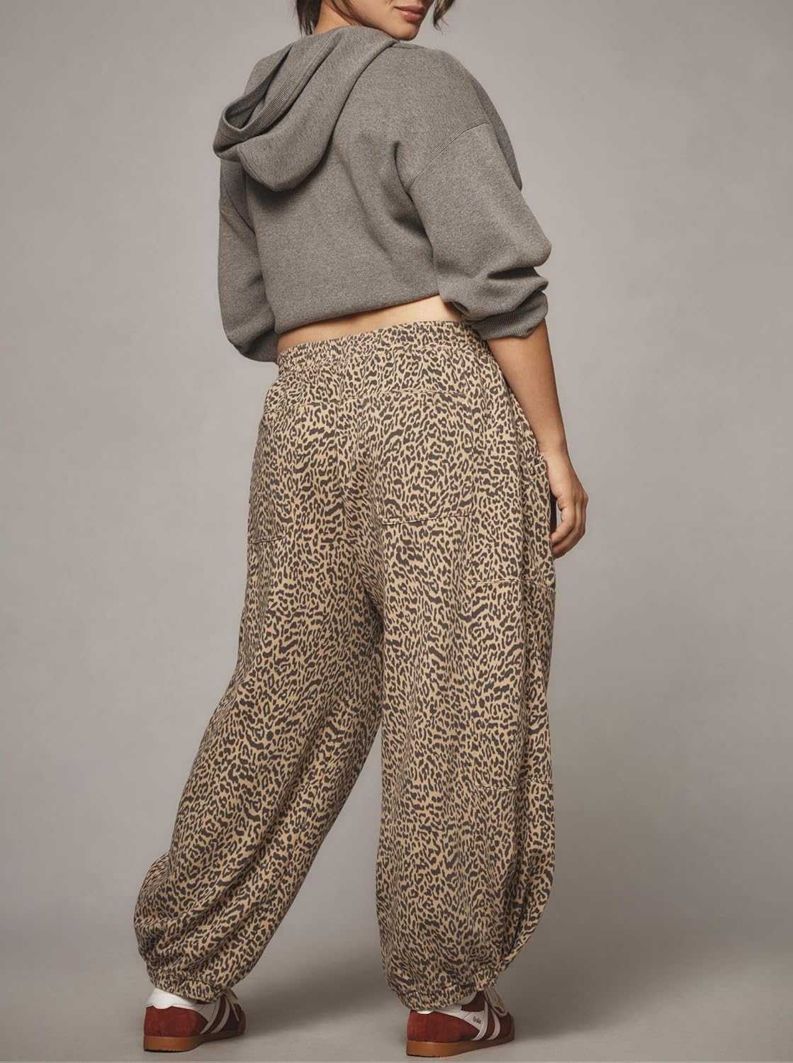 Women’s Leopard Barrel Pants Wide Leg Baggy Boyfriend Printed Joggers with Pockets